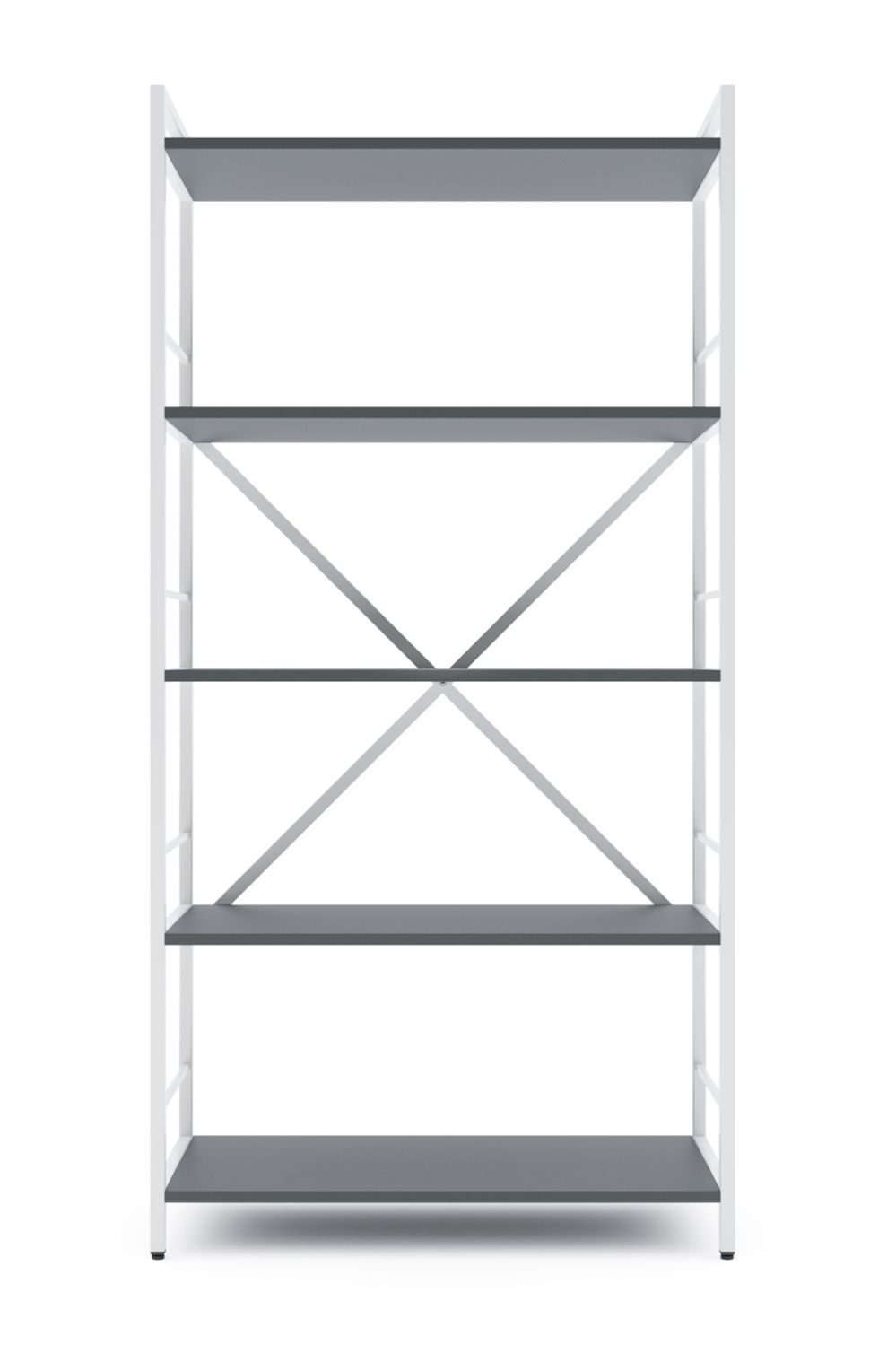 Каркас изготовлен из прочного металла со стальными цельными стойками, которые обеспечивают высокую жесткость и надежность всей конструкции. На задней части стеллажа расположены металлические перекрестные элементы, которые выполняют функцию ребер жесткости — это позволяет сохранять целостность конструкции даже при интенсивной эксплуатации. Изделие устойчиво к деформациям и колебаниям, что особенно важно при размещении тяжелых предметов.