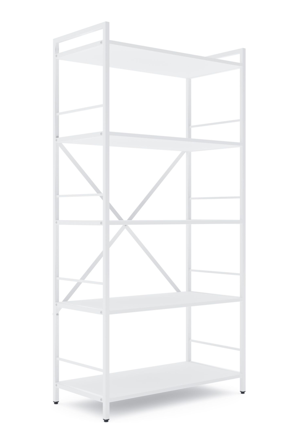 Стеллаж имеет пять просторных полок, изготовленные из высококачественного ламинированного ДСП, устойчивого к царапинам, влаге и износу. Полки надежно крепятся к конструкции с помощью болтов, что гарантирует стабильность даже при значительной нагрузке.