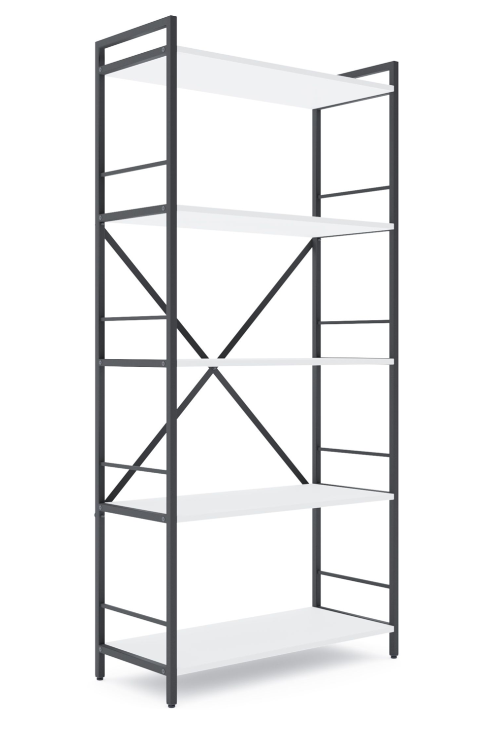 Дизайн изделия выдержан в популярном стиле лофт, сочетающем простоту форм, функциональность и современную эстетику. Вы можете выбрать цвет стоек — антрацит или белый — в зависимости от стиля вашего интерьера. Полки доступны в трех вариантах: антрацит, белый или дуб — для создания как контрастных, так и гармоничных комбинаций.