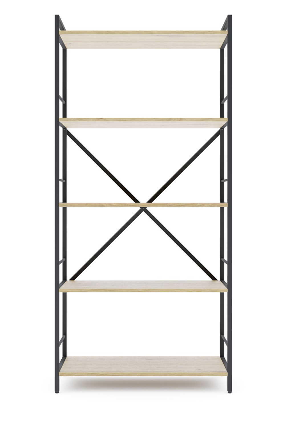 Каркас изготовлен из прочного металла со стальными цельными стойками, которые обеспечивают высокую жесткость и надежность всей конструкции. На задней части стеллажа расположены металлические перекрестные элементы, которые выполняют функцию ребер жесткости — это позволяет сохранять целостность конструкции даже при интенсивной эксплуатации. Изделие устойчиво к деформациям и колебаниям, что особенно важно при размещении тяжелых предметов.