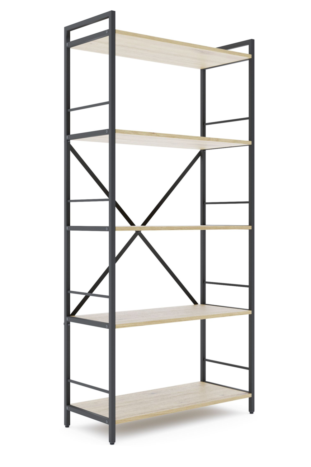 Стеллаж имеет пять просторных полок, изготовленные из высококачественного ламинированного ДСП, устойчивого к царапинам, влаге и износу. Полки надежно крепятся к конструкции с помощью болтов, что гарантирует стабильность даже при значительной нагрузке.