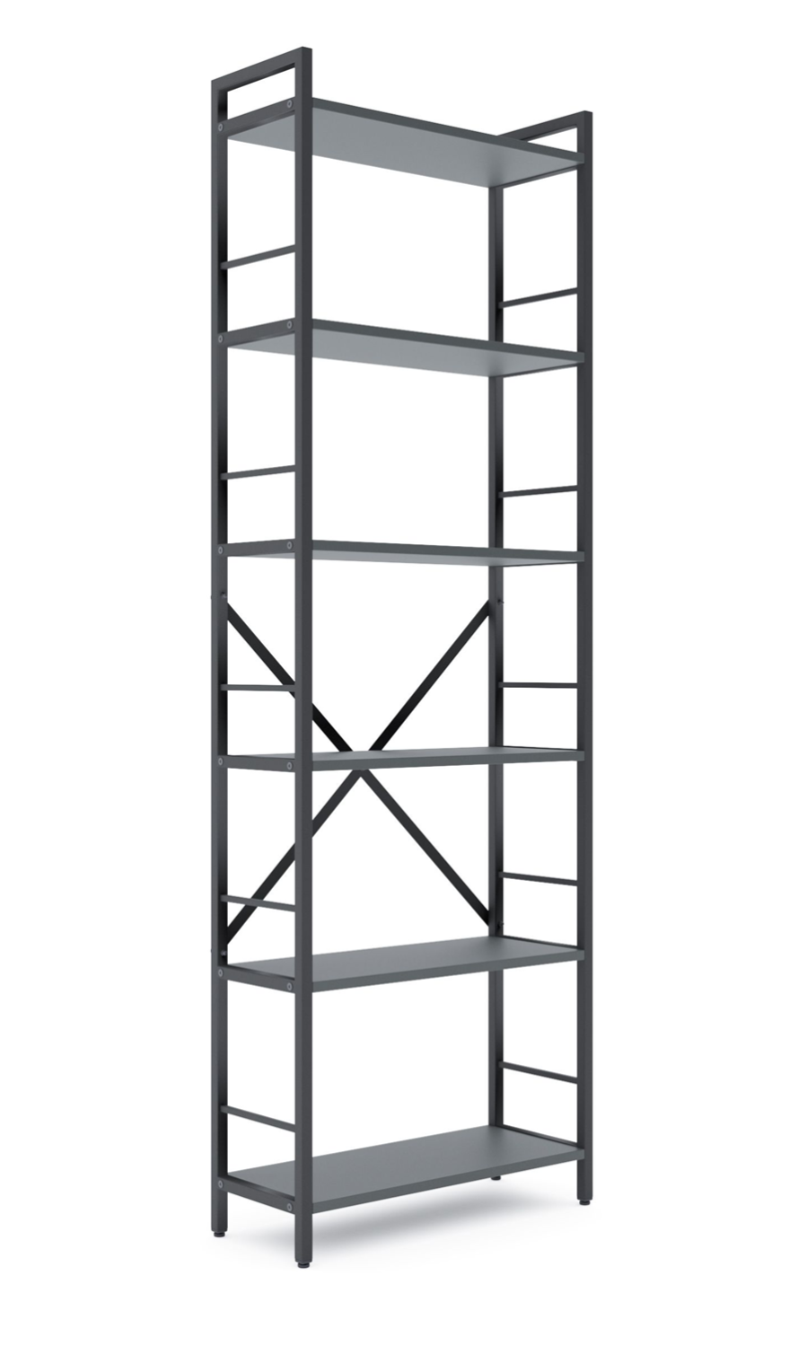 Каркас изготовлен из прочного металла со стальными цельными стойками, которые обеспечивают высокую жесткость и надежность всей конструкции. На задней части стеллажа расположены металлические перекрестные элементы, которые выполняют функцию ребер жесткости — это позволяет сохранять целостность конструкции даже при интенсивной эксплуатации. Изделие устойчиво к деформациям и колебаниям, что особенно важно при размещении тяжелых предметов.