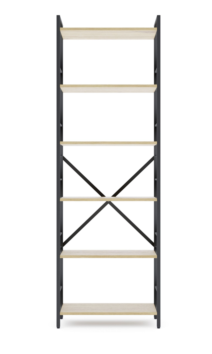 Каркас изготовлен из прочного металла со стальными цельными стойками, которые обеспечивают высокую жесткость и надежность всей конструкции. На задней части стеллажа расположены металлические перекрестные элементы, которые выполняют функцию ребер жесткости — это позволяет сохранять целостность конструкции даже при интенсивной эксплуатации. Изделие устойчиво к деформациям и колебаниям, что особенно важно при размещении тяжелых предметов.