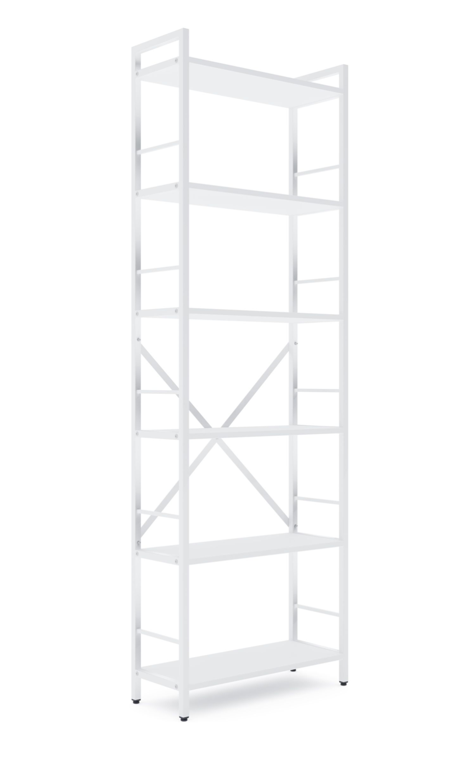 Каркас изготовлен из прочного металла со стальными цельными стойками, которые обеспечивают высокую жесткость и надежность всей конструкции. На задней части стеллажа расположены металлические перекрестные элементы, которые выполняют функцию ребер жесткости — это позволяет сохранять целостность конструкции даже при интенсивной эксплуатации. Изделие устойчиво к деформациям и колебаниям, что особенно важно при размещении тяжелых предметов.