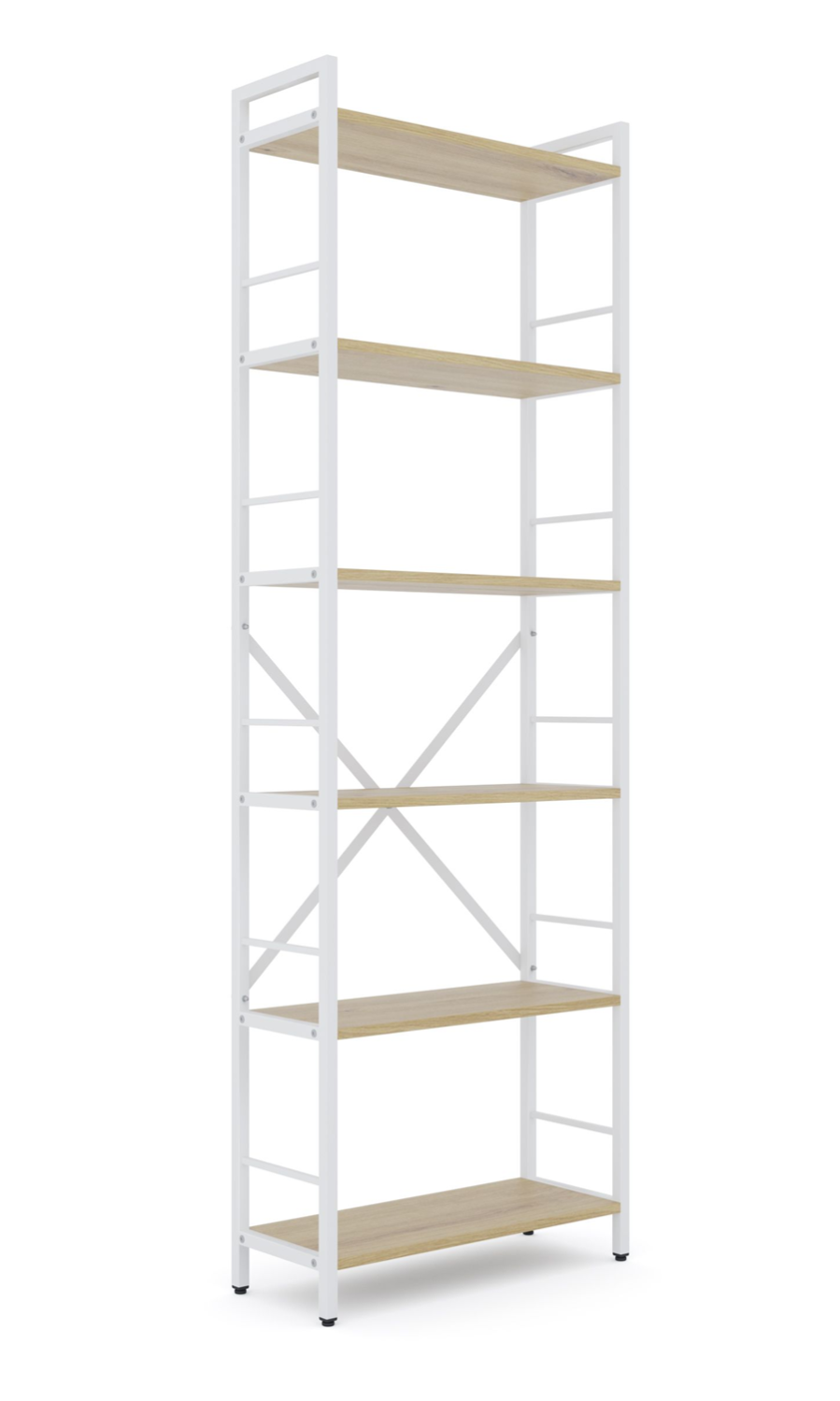 Стеллаж имеет шесть просторных полок, изготовленные из высококачественного ламинированного ДСП, устойчивого к царапинам, влаге и износу. Полки надежно крепятся к конструкции с помощью болтов, что гарантирует стабильность даже при значительной нагрузке.