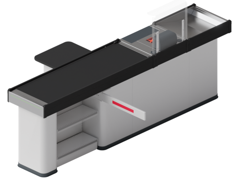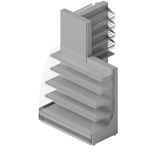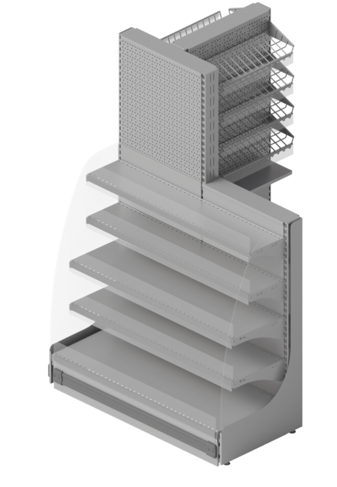 Стеллаж на торец транспортера с акриловыми боковинами имеет стильный и современный вид. Прозрачные боковины позволяют клиентам легко видеть товары на стеллаже. Доступно левое и правое выполнение.