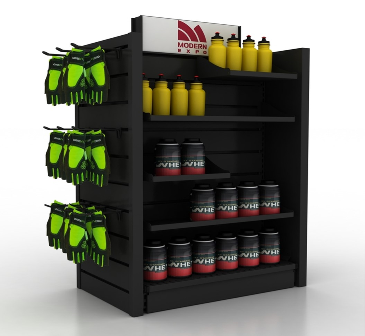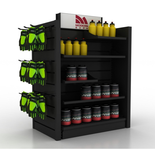 - Брендирование: стеллаж может быть брендирован логотипами и графикой магазина, создавая узнаваемый стиль и укрепляя брендирование.