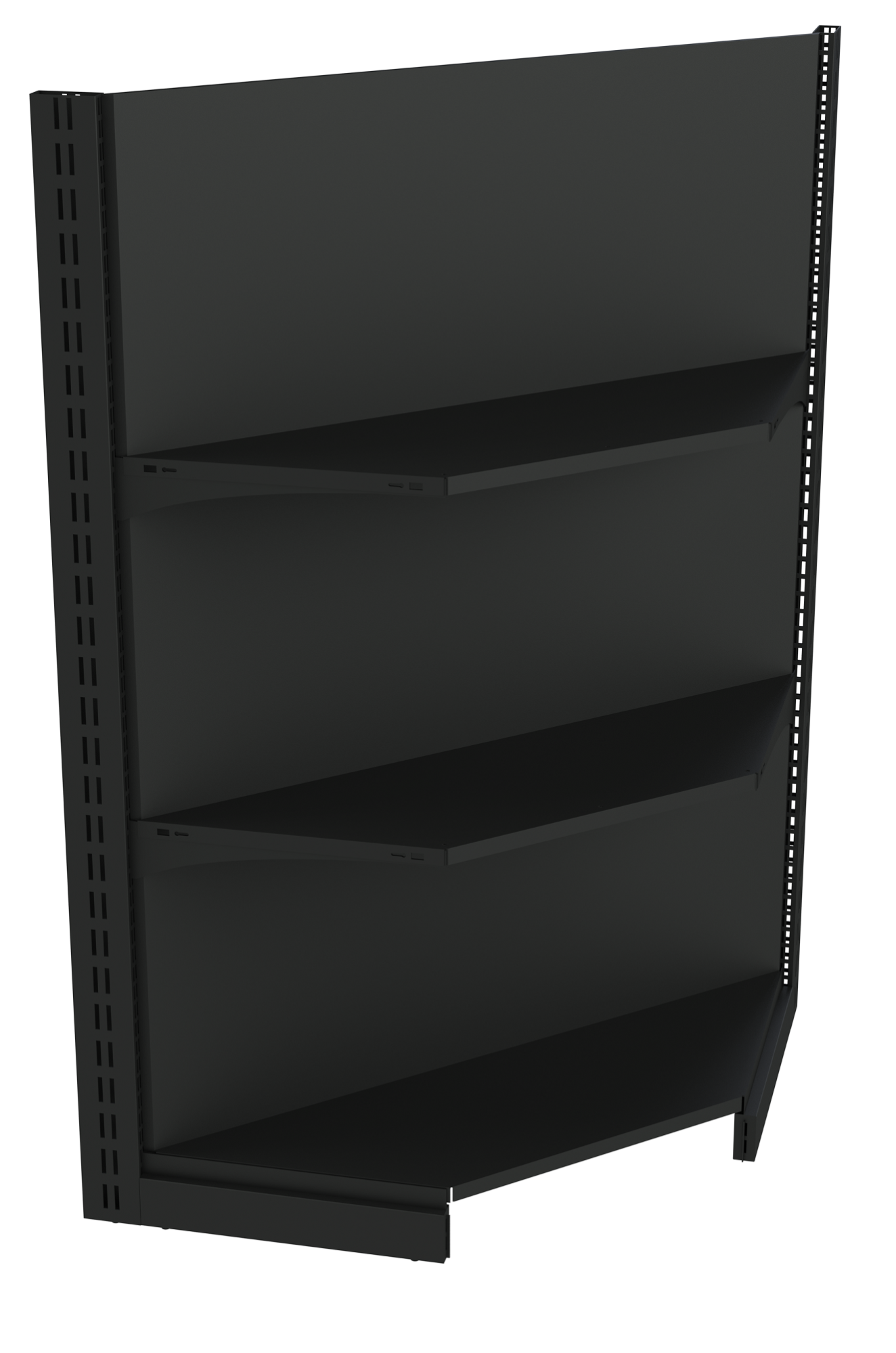 Угловое торговое оборудование способно соединить стандартные пристенные или двусторонние конструкции, а также заполнить пустующие углы, ниши, тем самым увеличив зоны хранения и повысив товарооборот за счет повышенного внимания покупателей к нестандартному размещению товара. Угловые стеллажи выпускаются в двух вариантах: внешние и внутренние. Рассмотрим основные составляющие конструкции.