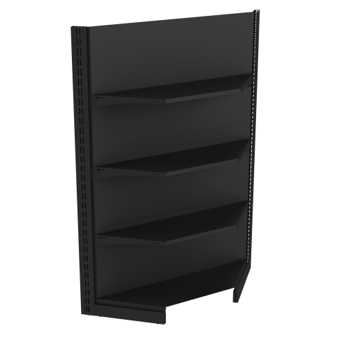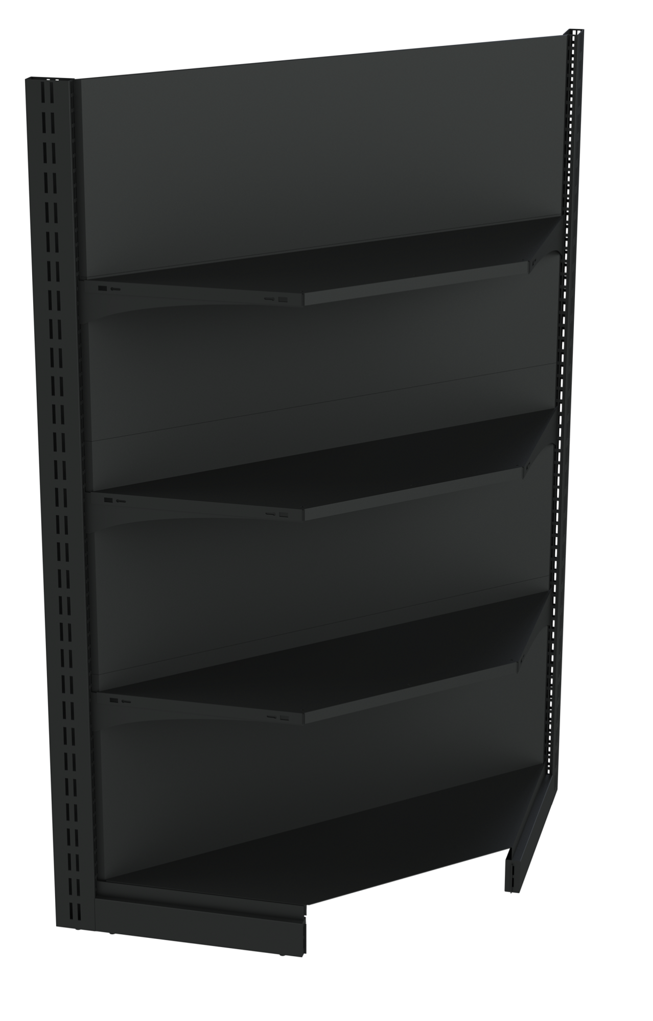 Угловое торговое оборудование способно соединить стандартные пристенные или двусторонние конструкции, а также заполнить пустующие углы, ниши, тем самым увеличив зоны хранения и повысив товарооборот за счет повышенного внимания покупателей к нестандартному размещению товара. Угловые стеллажи выпускаются в двух вариантах: внешние и внутренние. Рассмотрим основные составляющие конструкции.