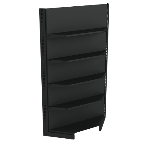 Угловое торговое оборудование способно соединить стандартные пристенные или двусторонние конструкции, а также заполнить пустующие углы, ниши, тем самым увеличив зоны хранения и повысив товарооборот за счет повышенного внимания покупателей к нестандартному размещению товара. Угловые стеллажи выпускаются в двух вариантах: внешние и внутренние. Рассмотрим основные составляющие конструкции.