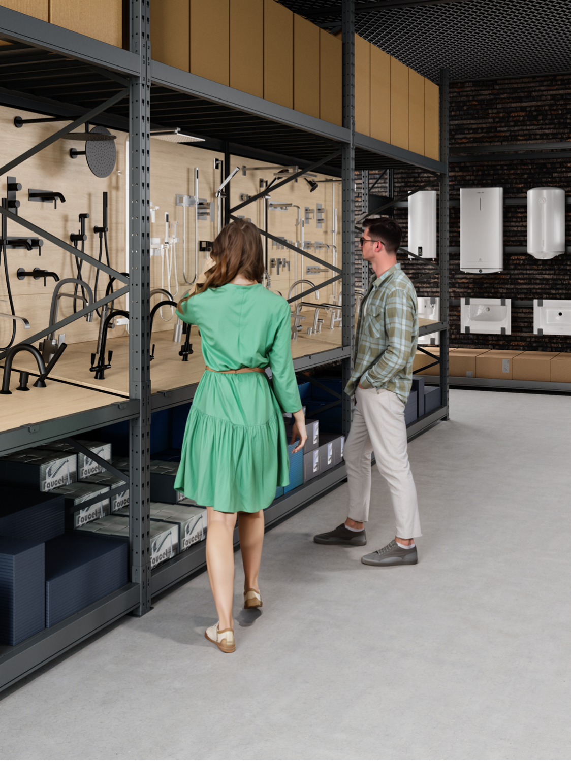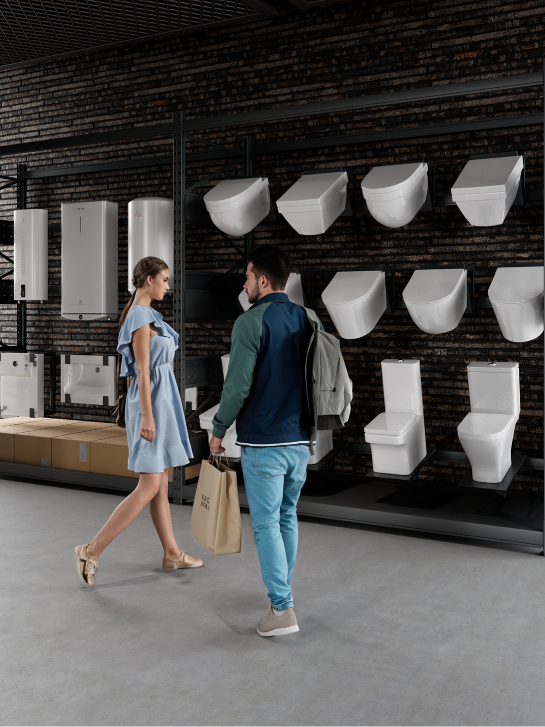 - Шоурумы: для презентации сантехники в различных вариантах и стилях, что позволяет клиентам оценить всю продукцию и выбрать лучший вариант для себя.