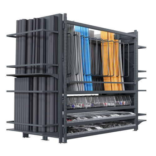 - Эффективная демонстрация товаров:С помощью стеллажей вы можете разместить сантехнические товары в разных вариантах, демонстрируя их разнообразие и привлекательность для клиентов. Стеллажи оснащены специальными панелями для крепления труб и фитингов, что позволяет представить продукцию в профессиональном виде.