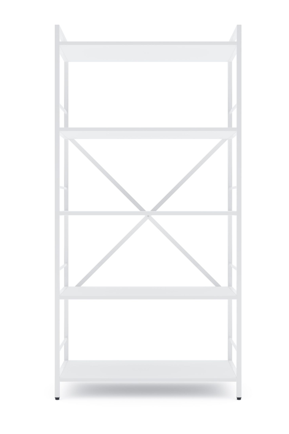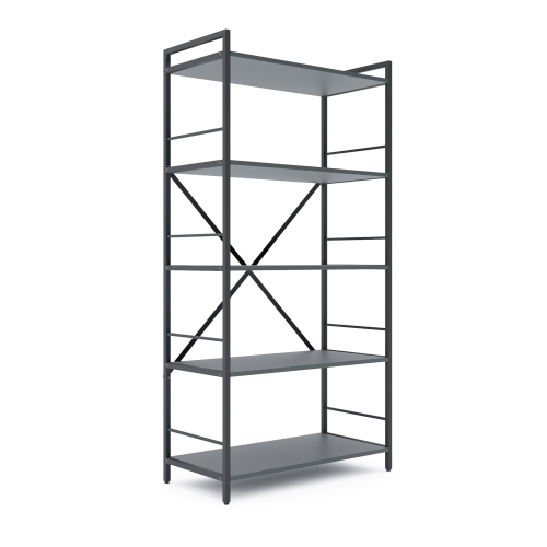 Каркас изготовлен из прочного металла со стальными цельными стойками, которые обеспечивают высокую жесткость и надежность всей конструкции. На задней части стеллажа расположены металлические перекрестные элементы, которые выполняют функцию ребер жесткости — это позволяет сохранять целостность конструкции даже при интенсивной эксплуатации. Изделие устойчиво к деформациям и колебаниям, что особенно важно при размещении тяжелых предметов.