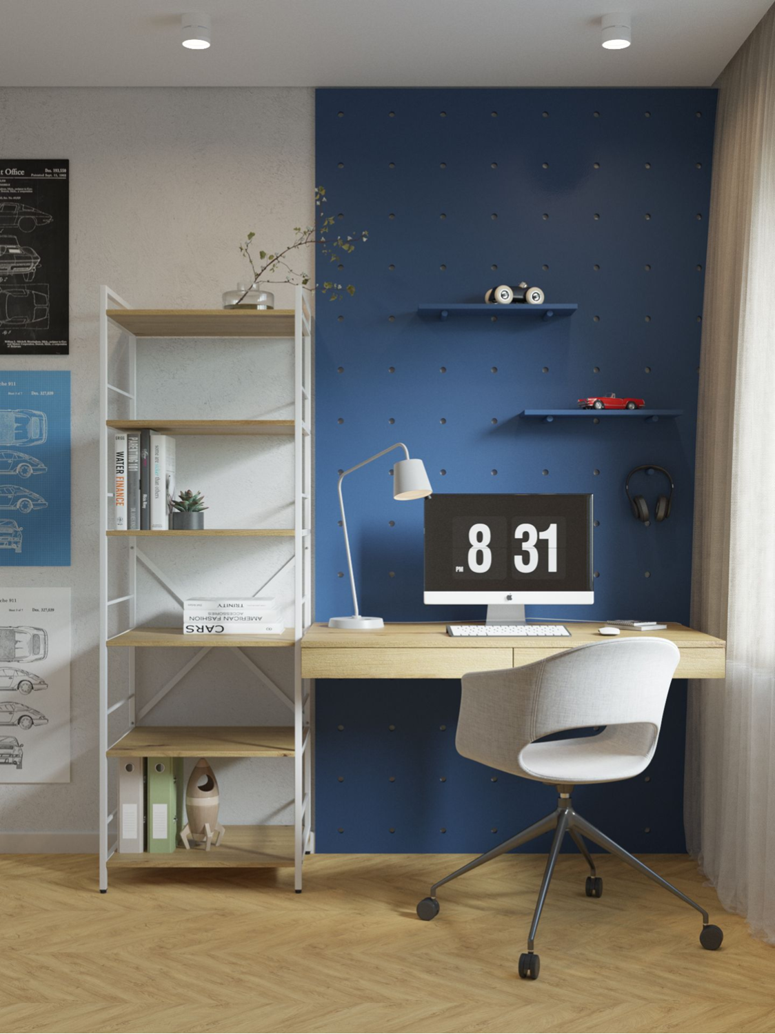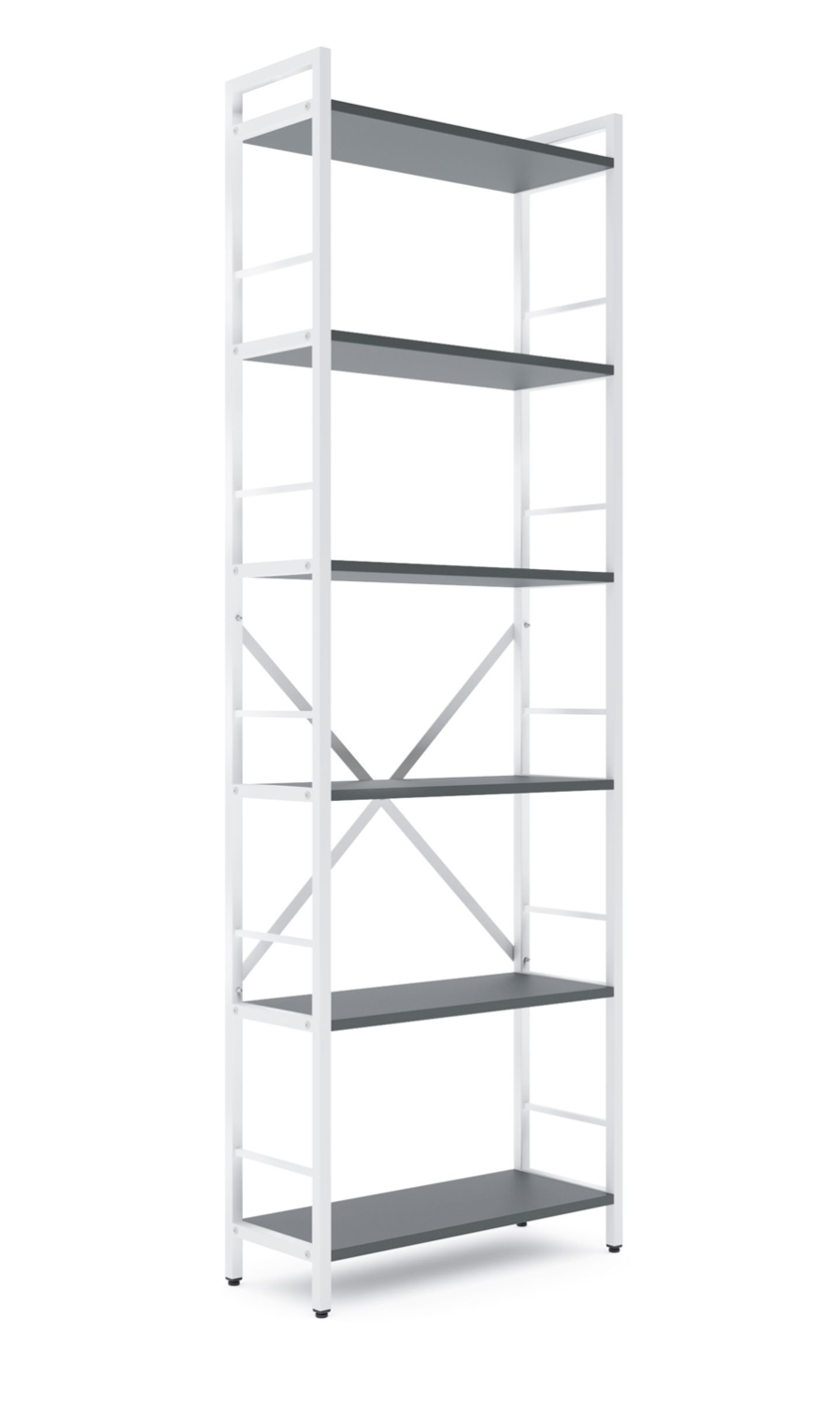 Дизайн изделия выдержан в популярном стиле лофт, сочетающем простоту форм, функциональность и современную эстетику. Вы можете выбрать цвет стоек — антрацит или белый — в зависимости от стиля вашего интерьера. Полки доступны в трех вариантах: антрацит, белый или дуб — для создания как контрастных, так и гармоничных комбинаций.