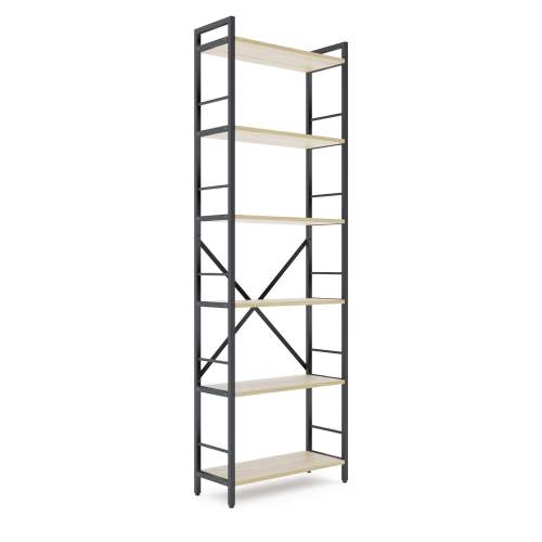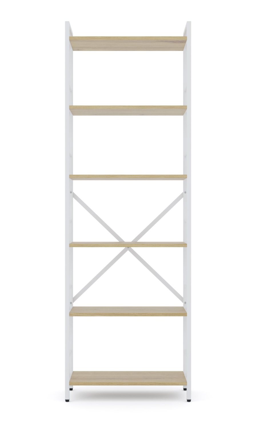 Стеллаж имеет шесть просторных полок, изготовленные из высококачественного ламинированного ДСП, устойчивого к царапинам, влаге и износу. Полки надежно крепятся к конструкции с помощью болтов, что гарантирует стабильность даже при значительной нагрузке.