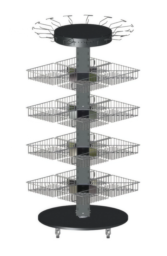 Стойка на колесах с проволочными корзинами