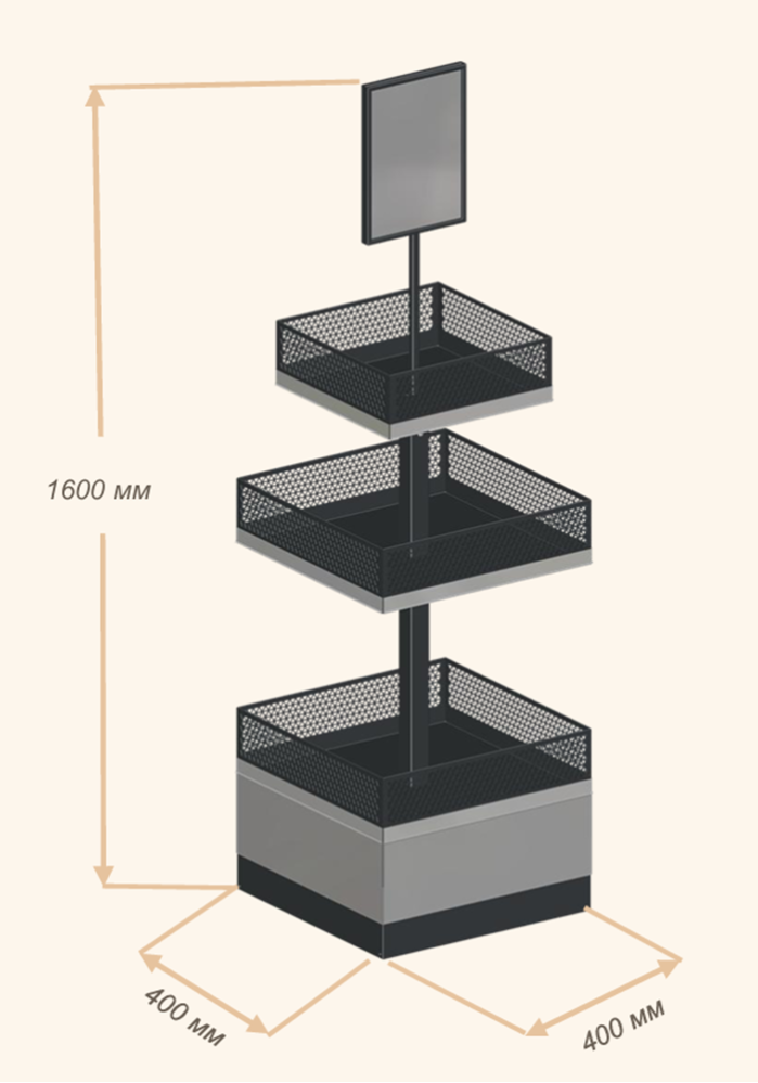 - Функциональность — три уровня позволяют выкладывать большой ассортимент мелкого товара на ограниченной площади.