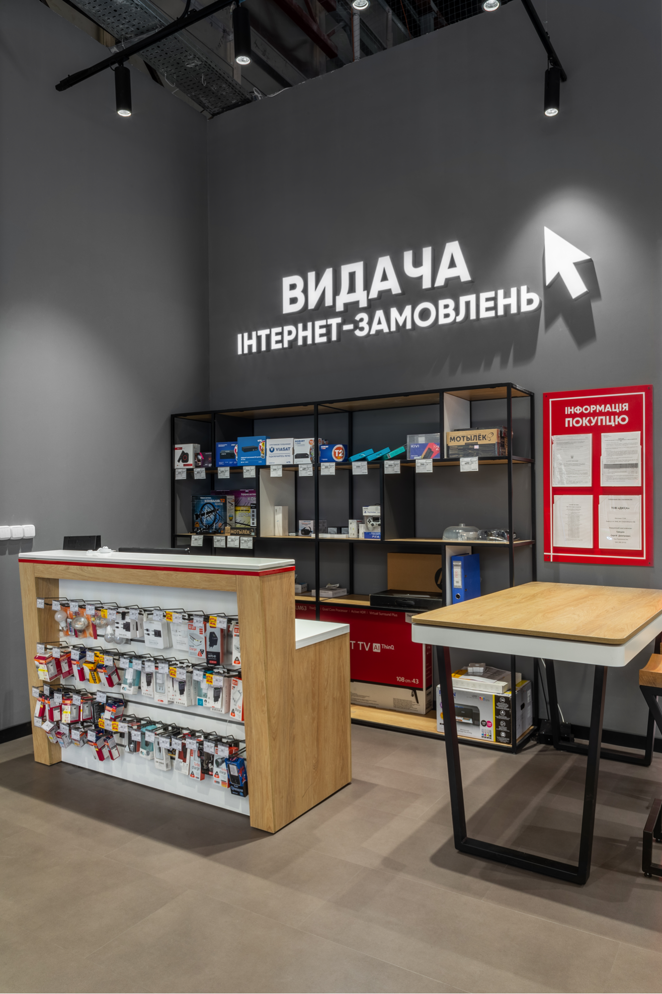 Стойка кассовая для магазинов бытовой техники представляет собой конструкцию, предназначенную для размещения кассового оборудования и обеспечения удобства работы кассира, а также размещение мелкой продукции и аксессуаров.