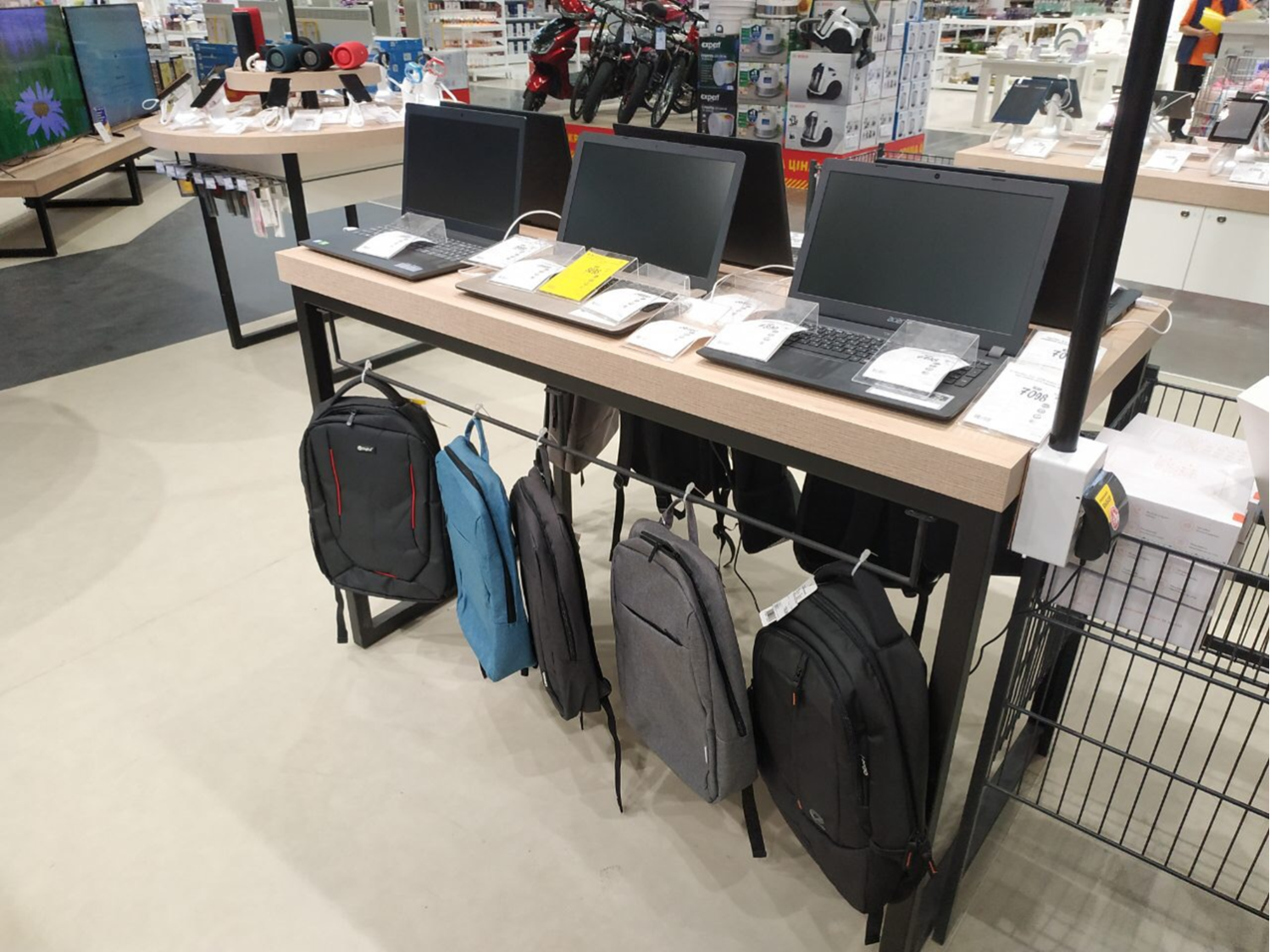 Стол для ноутбуков для демонстрации мелкой электроники в магазинах бытовой техники — это специально разработанное мебельное изделие для эффективной демонстрации и презентации ноутбуков и другой мелкой электроники.
