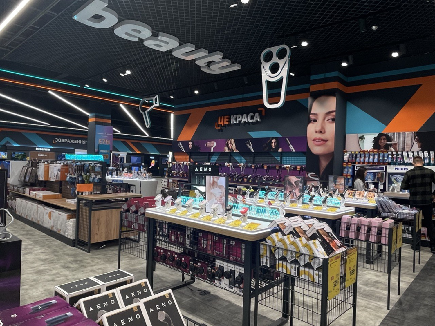 - Брендирование: пространство для размещения логотипов и брендированных элементов для укрепления бренда магазина, имеет рекламную световую панель.