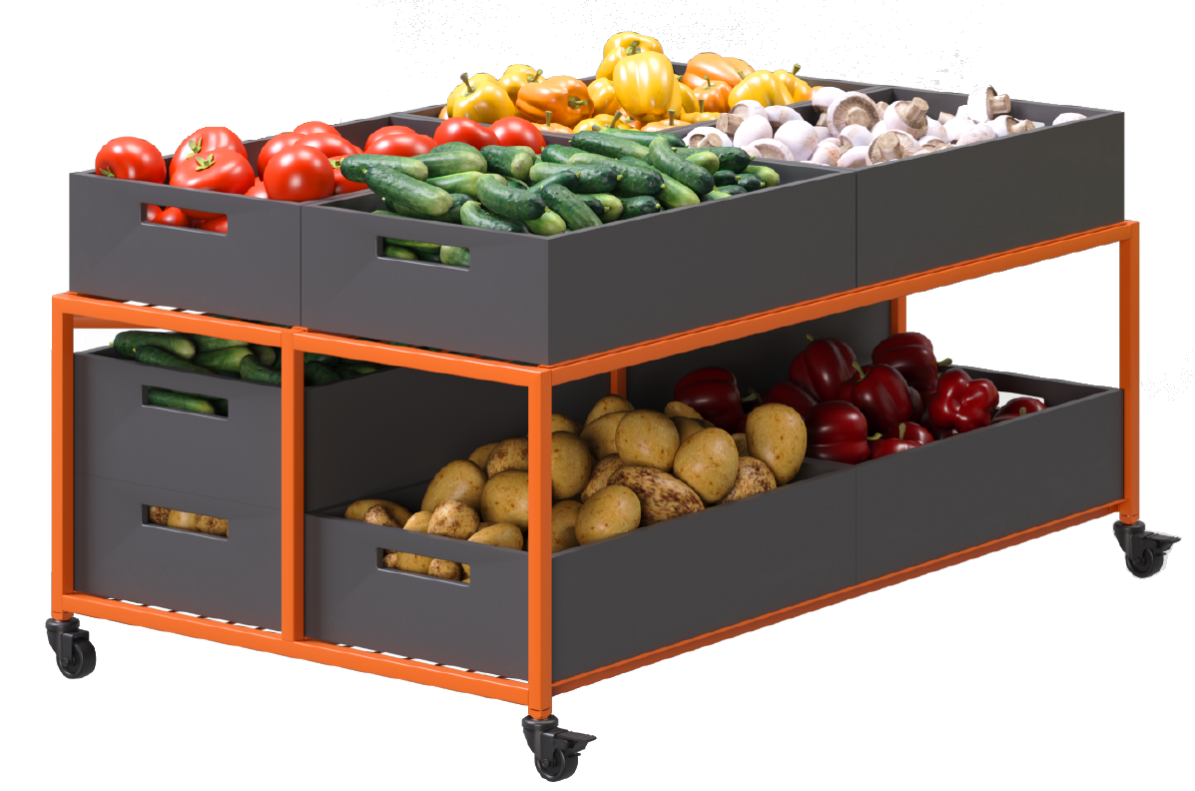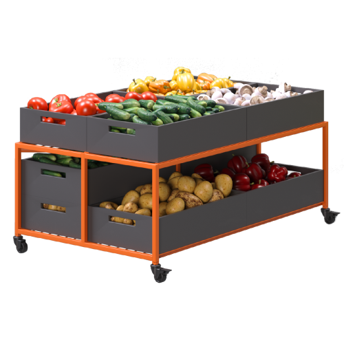 Такой элемент оборудования для магазина позволяет разместить овощи аккуратно. Это создает упорядоченный вид, привлекая внимание покупателей и стимулируя продажи.