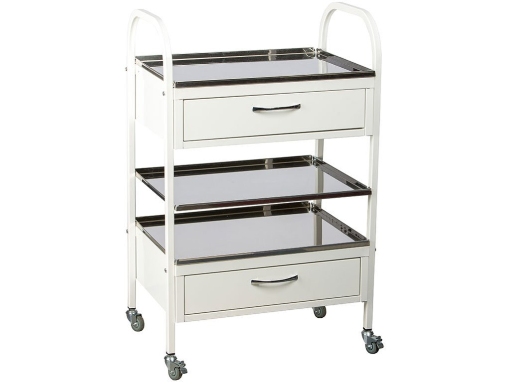 Медицинские столики MD SМ 2 предназначены для размещения инструмента, лекарственных препаратов и приборов. Используются в больницах, клиниках, санаториях и других медицинских организациях. Комплектуется тремя полками и двумя выдвижными ящиками, что позволяет обеспечить компактное размещение на них медицинских инструментов, перевязочных средств, вакцин, препаратов при проведении профилактических и лечебных мероприятий.