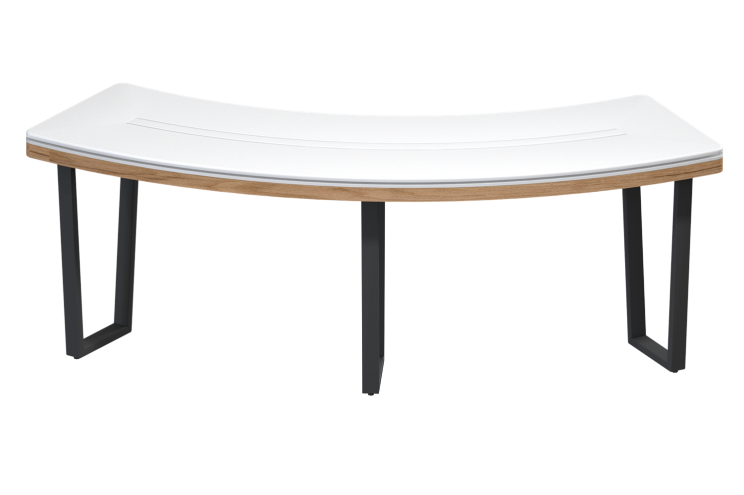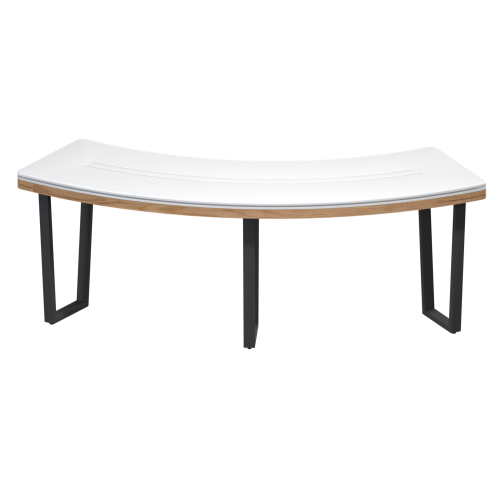 - Овальная форма: Создает эргономичное пространство для демонстрации товаров и обеспечивает равномерное распределение внимания покупателей, столешница из окрашеного МДФ.