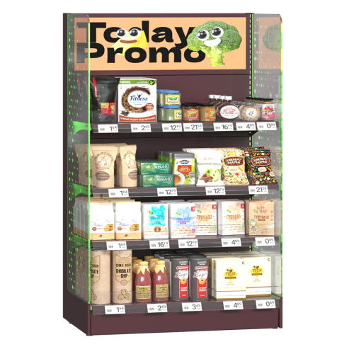 Эстетичный стиль. Торец стеллажа с акриловыми боковинами имеет стильный и современный вид. Прозрачные боковины позволяют клиентам легко видеть товары на стеллаже.