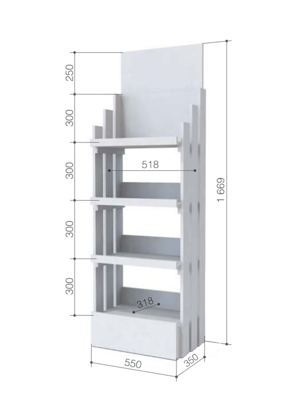 - Многоуровневая конструкция: 4 полки для эффективного использования пространства и представление различных товаров, имеющих максимальную нагрузку на полку 40 кг.