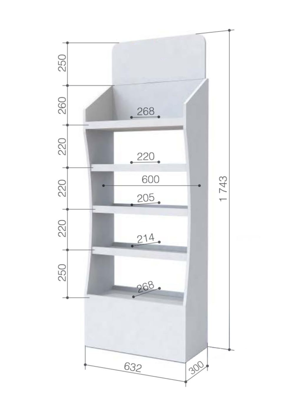 - Многоуровневая конструкция: 5 полок для эффективного использования пространства и представление различных товаров, имеющих максимальную нагрузку на полку 20 кг.