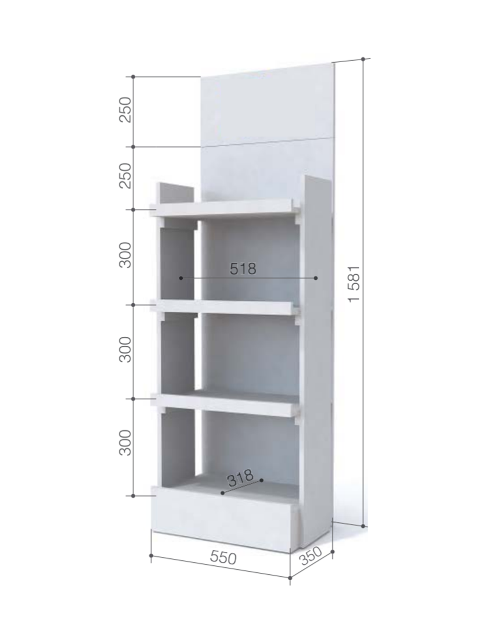 - Многоуровневая конструкция: 4 полки для эффективного использования пространства и представление различных товаров, имеющих максимальную нагрузку на полку 25 кг.
