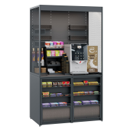 - Организация пространства — тумба позволяет удобно хранить все необходимое для приготовления напитков, обслуживания аппарата, а также запас расходных материалов в одном месте.
