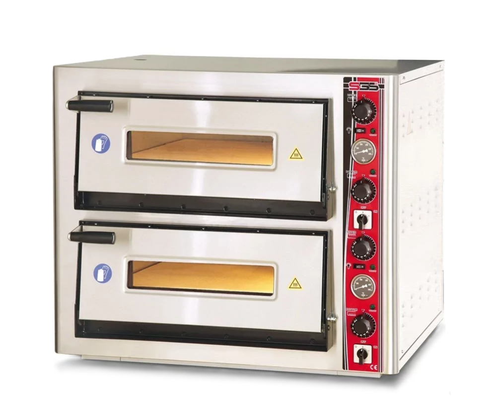 Піч для приготування піци SGS PO 6262 DE двосекційна турецького виробництва розрахована на одночасне приготування десяти піц діаметром до 250 мм або восьми діаметром до 300 мм.