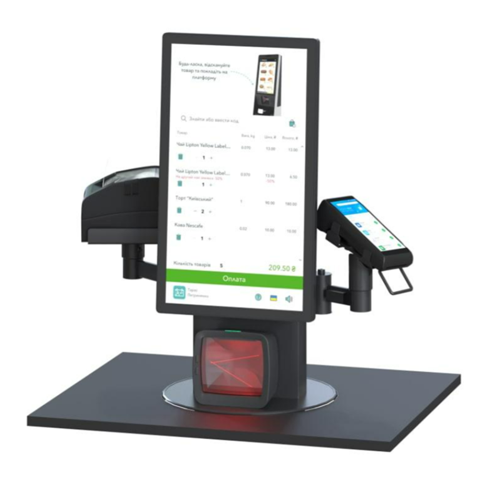 | Комплектуючі | сканер - Datalogic Magellan 3450VSI/9300I, готівкова скриня FlipTop 100, тримач принтеру, тримач терміналу оплати |