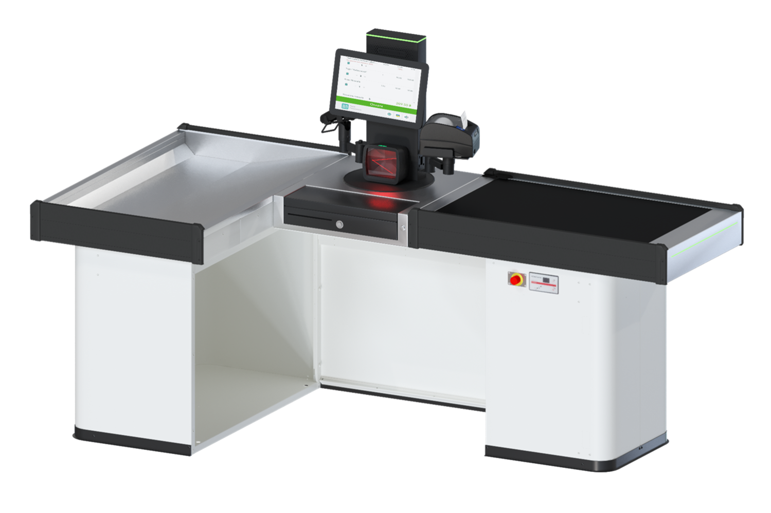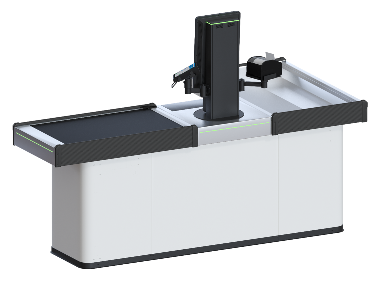 Seline ROTO має низку інтегрованих аксесуарів: готівкову скриню FlipTop 100, тримач для терміналу оплати, тримач принтера та потужний сканер штрихкодів Datalogic Magellan 3450VSI. Усі компоненти зручно розміщені, що сприяє компактності та ефективності робочого місця.