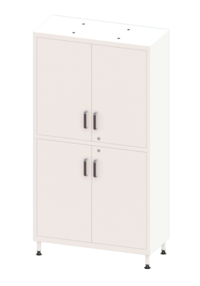 | Додатково | ручки - 128 мм; комплектація: дві секції з 4-ма дверима, закриваються на замок; у кожній секції по 2 полиці, що регулюються за висотою; шафа встановлена на опори з профільної труби 20х20 мм і має можливість регулювання висоти в діапазоні до 20 мм. |
