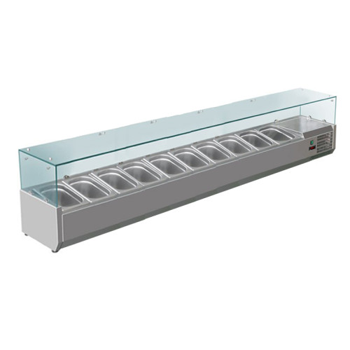Вітрина для топінгу HURAKAN HKN-GXD2000GC під 10 х GN1/4 є практично ідеальним варіантом для піцерій та призначена для короткочасного зберігання та демонстрації, попередньо охолоджених продуктів (салатів, закусок, гарнірів) у магазинах, кафе, барах, ресторанах. Найбільш широко застосовуються в піцеріях для зберігання топінгу (начинки для піци).