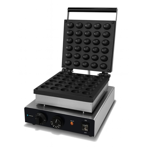 Корпус вафельницы выполнен из нержавеющей стали, что обеспечивает прочность, гигиеничность и долговечность оборудования. Рабочая поверхность изготовлена из чугуна с антипригарным покрытием, что гарантирует равномерное пропекание и легкое извлечение готовых орешков. Одна вафельница позволяет одновременно приготовить до 30 половинок орешков, что оптимизирует рабочий процесс при больших объемах заказов.