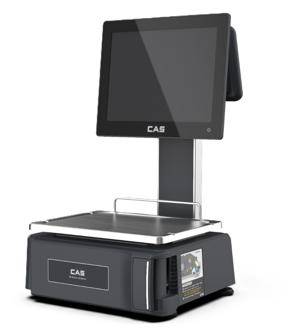 Новая модель CAS CL-8000 с 15-дюймовым сенсорным экраном - весы самообслуживания для супермаркетов с удобным и современным интерфейсом.