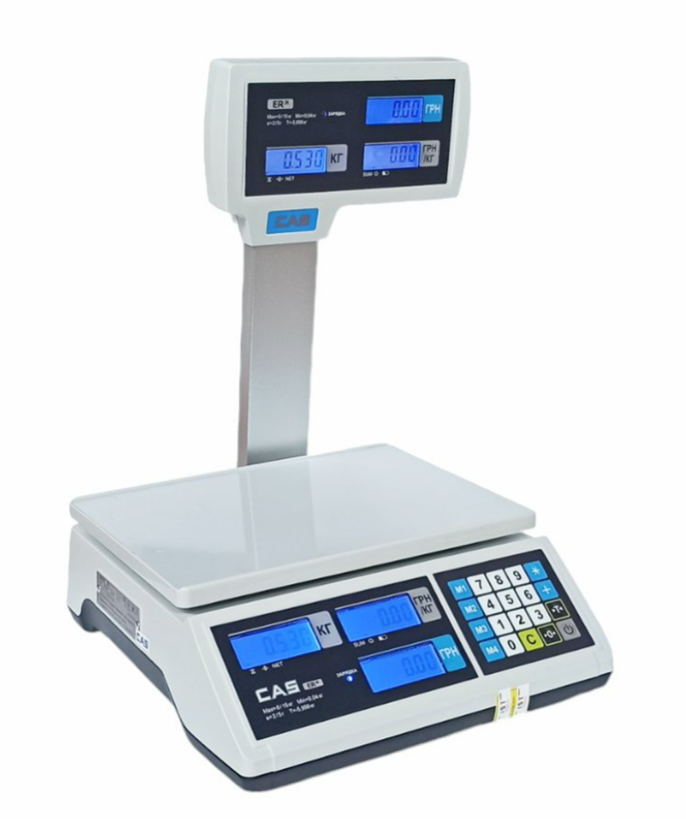 Весы торговые CAS ER JR — это надежные электронные торговые весы эконом-класса со встроенным аккумулятором и двусторонним LCD-дисплеем. Благодаря удобному расположению экранов, как продавец, так и покупатель видят результаты взвешивания, что повышает доверие клиентов и облегчает обслуживание.
