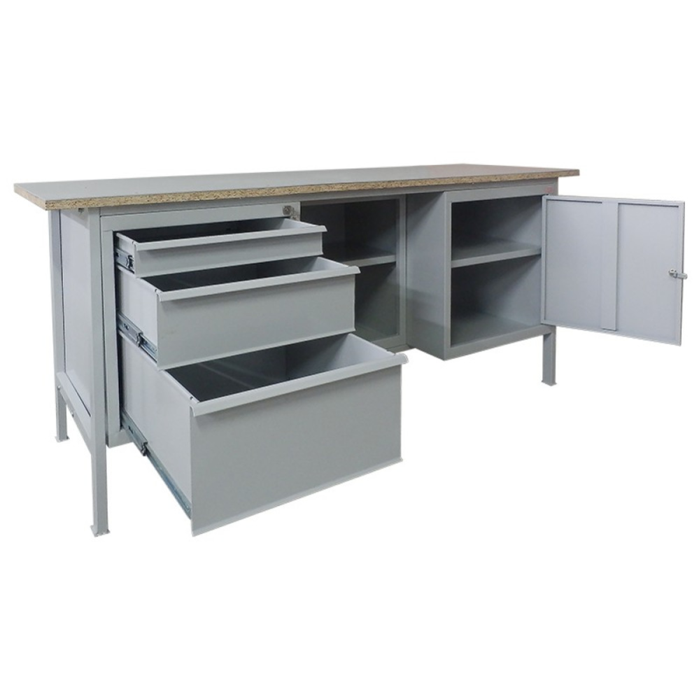 - правая тумба — с внутренними полками для хранения габаритных инструментов, материалов и оснащения.
