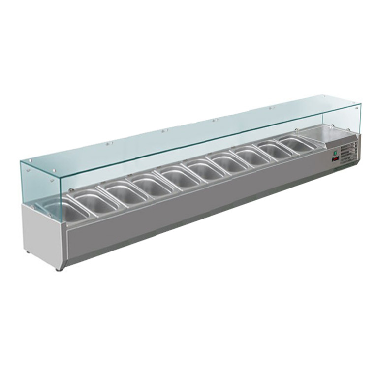 Настольная холодильная витрина надставка Hurakan HKN-GXD прекрасно подходит для кратковременного хранения и демонстрации, предварительно охлажденных продуктов (салатов, закусок, гарниров) в магазинах, кафе, барах, ресторанах, суши-барах.
