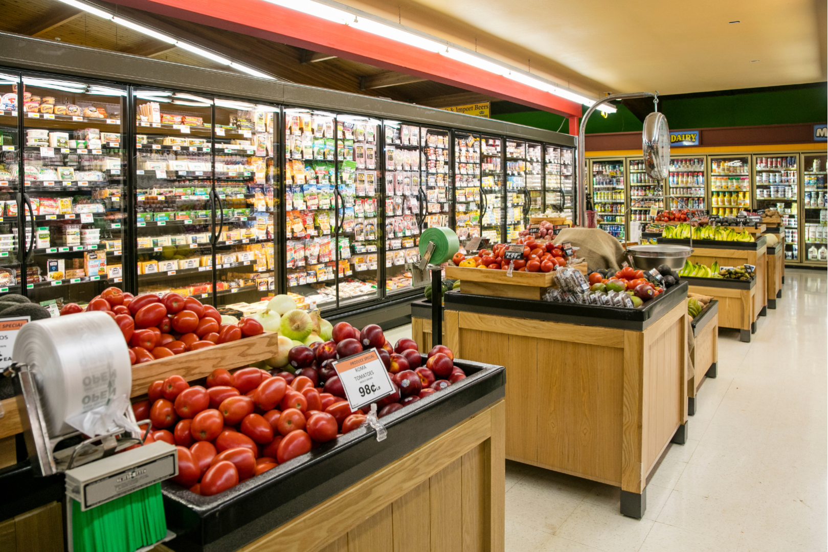торговое оборудование в продуктовом магазине. Среди основных зон: